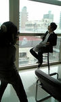 近年のメガネ男子&草食系男子ブームにならい、カフェの窓際でメガネをかけて脚本を読むカンノさん、という設定に。