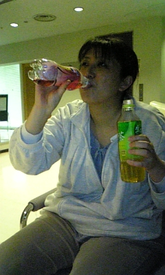 写真は昨日の稽古の合間、念願のあずきペプシを香織からひとくちもらう高野さん。