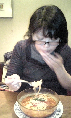 ア・ラ・モンタン食べながら、辛さにちょっと身じろいだところをタイミングよく(?)撮影してしまいました。