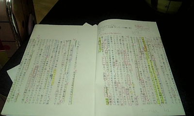 稽古の過程で脚本にいろいろメモしてきたので、それを本番用脚本に転記しようと思って。