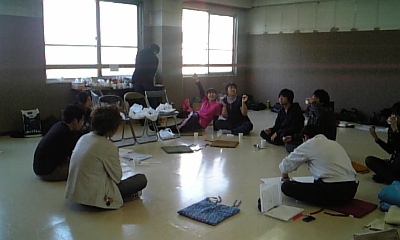 輪になりつつ、ごはん食べつつ。