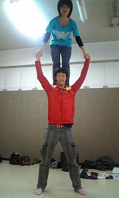 先程のOKコンビによる、謎の組体操。